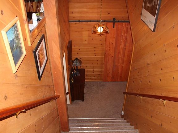 This cozy cabin in the Village of June Lake offers a charming retreat with convenient access to the beauty of the surrounding area. As you enter, you'll find yourself on the garage level, with stairs leading up to two snug bedrooms, a bathroom, and a laundry area. Ascending to the next floor, you'll step into a welcoming open living room, offering captivating vistas of Gull Lake and the mountains beyond. A stone fireplace with a wood insert stands as the focal point, promising warmth and comfort during cooler weather. Adjacent to the living room, the kitchen awaits, equipped with electric appliances and ample cupboard space for your culinary endeavors. At the opposite end of the living room lies the primary bedroom, boasting picturesque views of Gull Lake, along with an attached full bath for added convenience. Another bedroom on this level also enjoys its own full bath. Stepping out the back door, you'll discover a spacious stone patio, complete with a fireplace and a hot tub—a perfect setting for relaxation and soaking in the natural beauty of the surroundings. Whether you're seeking a peaceful retreat or an adventure-filled getaway, this quaint cabin offers the ideal blend of comfort and scenic splendor in the heart of June Lake Village.
