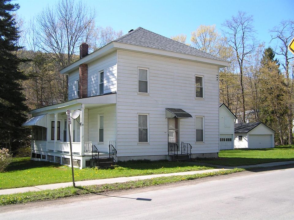 DON'T JUDGE A HOME BY IT'S COVER ! This well maintained home is in immaculate condition, a little old fashioned, but a real charmer ! Roomy eat in kitchen plus a 12 x 15 formal dining room, living room and a den/family room with french doors. One bedroom and full bath first floor and 3 bedrooms and full bath second level. Off the kitchen there is a wainscot mudroom with attached covered porch, overlooking the rock bottom year round stream, and a wainscot glassed porch. Add some shutters and it will spruce up the visual ! The level yard, has long frontage including an original 2 story barn with electric & workshop area, and finishes with a newer 2 car garage. Plenty of room for flower beds, veggie gardens and children to play ball ! Walk to a fine school (with public pool), Post Office, Bank, Churches, restaurants, and stores. 20 mins to Oneonta or Cobleskill for additional shopping, medical facilities, entertainment, colleges, and more