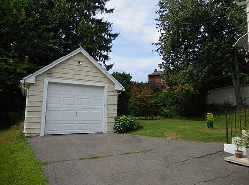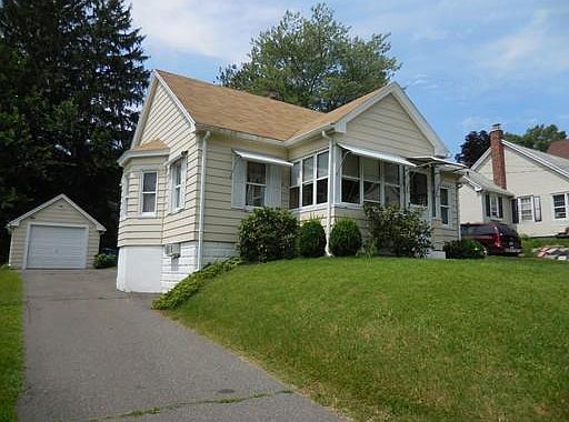 A pleasant surprise awaits you! Absolutely adorable is this well maintained aluminum sided Bungalow that is located in a wonderful neighborhood and set on a private & very pretty landscaped yard w/ a one car detached garage w/a garden shed. An immaculate kept home with gas heat, newer central air unit, mostly replacement windows,wood floors in many rooms & maybe under the carpeting in the living room. You'll find a charming kitchen w/good cabinet space, some pull out drawers,a sun-filled dining area w/ceramic tile that is open to the lovely living room w/ plush carpeting,sparkling renovated bathroom w/ceramic tile flooring, a bright & spacious master bedroom w/wood flrs, the 2nd bedrm is a nice size room w/wood flrs & is presently used as a dining room & there's also a delightful enclosed front porch for relaxing. A real bonus for that extra space is the terrific finished basement that has so many uses & ideal for gatherings! This is a real sweetheart of a home!