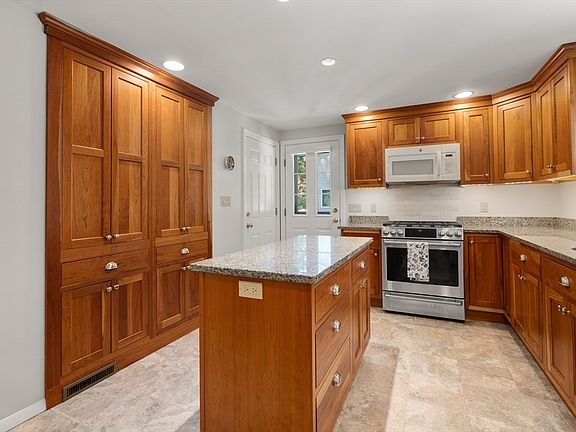 Ideal blend of modern living with natural tranquility in this exceptionally upgraded Ranch style home with 4 bedrooms and 2 updated bathrooms in Nobscot neighborhood. Large, sun-filled rooms including a gourmet kitchen with custom cherry cabinets, granite counters, top tier appliances, center work island and breakfast bar. Living room offers a cozy wood fireplace and the spacious dining room opens with pocket doors. A main level primary bedroom with full bath and three additional bedrooms- all with hardwood flooring. All systems and mechanicals have been upgraded including furnace with HEPA filtration, AC, Make-up air and water heater. Roof, kitchen, generator, closet systems, bathrooms (with heated floors), fencing, exterior lighting, decking and wiring all completed recently. Full basement with excellent lighting, concrete flooring and plenty of space for storage, gym, shop, laundry and future finished space. Spectacular, fenced yard with professional plantings. Deck, garage + more