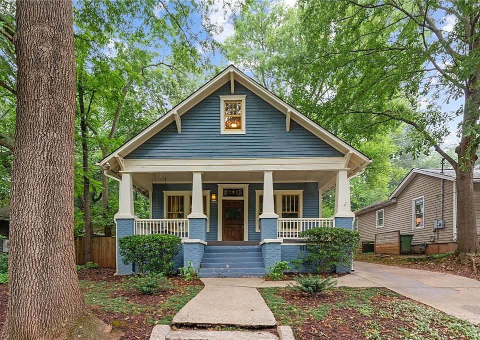 Great opportunity to own a home in the highly desirable Kirkwood neighborhood. This charming 1920s bungalow is perfectly located just 3 blocks from Pullman Yards and the Kirkwood Historic District full of retail, restaurants and parks. A classic swing porch, spanning the full width of the home, welcomes you into a formal living room with stained glass transom, original 4-over-1 windows, brick fireplace, original heart pine floors and 10' ceilings. The typical historic craftsman layout flows into the dining room with a fireplace and double vaulted ceilings for hosting great dinner parties. The open kitchen is equipped with granite countertops and stainless steel appliances. Retreat into the spacious primary suite on the main floor with walk-in closet and separate tub/shower in the bathroom. Huge back deck off of the kitchen overlooking a fenced yard for great outdoor living. Bonus room upstairs could be used as a 4th bedroom or office.
