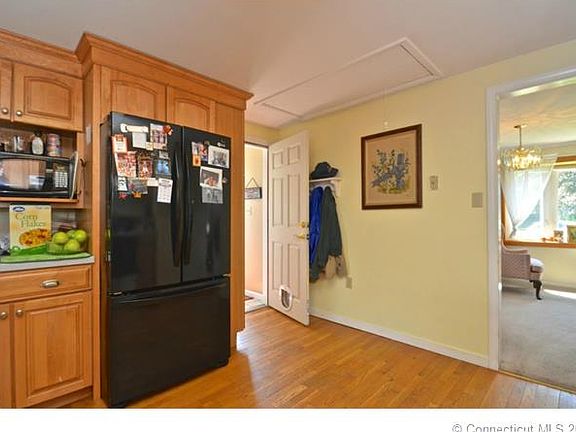 Priced to move! 1,544 SF Ranch style home features a remodeled kitchen with maple cabinets, eating area, hardwood floors and pantry. Kitchen opens to Great room with vaulted ceilings, 1/2 bath and slider to wood deck. Combination living room and dining room with bay window and crown molding. 3rd bedroom converted into main level laundry room. Full bath with wainscoting and hydro bath tub. Upgrades include, newer gas furnace, hot water tank, updated electric, gutter guards, and newer CAir.