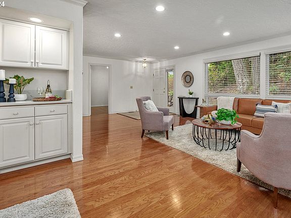 This light and airy Condolea home showcases a recently remodeled living room and kitchen. Experience peaceful and private views from the wall of windows in the family room, where Mt. Hood peaks above the trees. The large deck with glass sliders to the kitchen provides ample room for dining, and a gas line is available for your grill. Enjoy easy main-level living, complemented by an excellent lower-level office or guest room with a separate entrance. The Condolea is a resort-style, 55+ community offering numerous amenities. The two-story clubhouse, complete with a restaurant-style kitchen, is suitable for large events and community gatherings. Relax and socialize at the pool, hot tub, and patio. Additionally, Mountain Park residents have access to the nearby aquatics center, weight room, tennis courts, and fitness classes. This special condo is situated as an end-unit in a private courtyard location. The two-car garage, dumbwaiter, and stair lift contribute to convenient and practical living. Located within walking distance to restaurants and shopping, including Starbucks and New Seasons.
