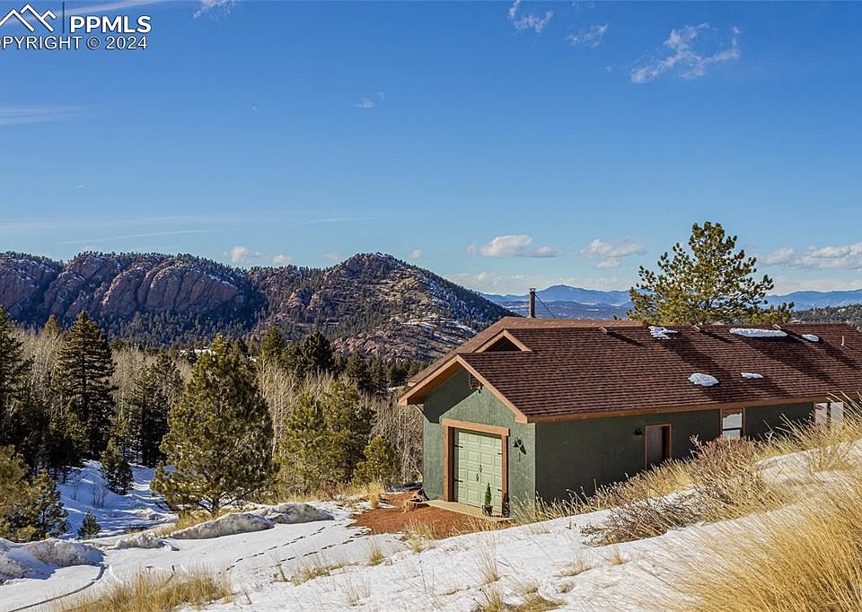 Discover the BEST of one-level living in this ranch-style home perfectly placed on nearly an acre of very picturesque mountain landscaping! As you drive to this all-season beauty, take in the neighborhood views and know it is just setting the stage for the awe-inspiring views that await at home. The moment you step through the front door, expansive windows showcase unparalleled vistas of the mountains and nature. Witness breathtaking sunsets, 360 views, and enjoy watching the visiting wildlife from the comfort of your living space. Meticulously maintained, this residence offers vaulted ceilings, a cozy wood stove, picture windows, and luxury vinyl flooring. The spacious Primary bedroom has walk-in closet and adjoining private bath. Kitchen has luxury vinyl flooring and plenty of cabinetry and counterspace. You’ll love the view from the Dining area, and it walks out to the scenic back deck for easy barbecuing and great entertaining. There are 2 more bedrooms, a full shared bathroom, and laundry space for added convenience. Whether you’re wanting a primary home, vacation home, or STR, this home is turn-key and all furniture is available separately. Located on county-maintained roads, Cripple Creek Mountain Estates is a desirable neighborhood whose residents enjoy many neighborhood amenities including a heated pool, fitness center, tennis and pickleball courts, disc golf, and clubhouse. Offering both serenity and convenience, CCME is just minutes from shopping and dining, with a 15-minute drive to historic Cripple Creek and only 40 minutes to Woodland Park. Experience the best of Colorado with a two-hour drive to premier ski resorts, and embrace the abundance of outdoor activities offered by the nearby National Forest—hiking, camping, fishing, hunting, and 4-wheeling. Welcome home to classic Colorado!