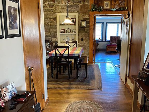 There's so much character in this solid stone rancher! Wood floors, stone fireplace and accents, built-in units, knotty pine ceilings throughout, and a bright and charming sun room. The kitchen has been recently updated with refinished cabinets and new counters, back splash, and flooring. The layout includes two bedrooms and a full bathroom on the main level and on the lower level, another full bathroom and an additional space for a third bedroom or a rec room. All in a desirable Manbeck Heights location!