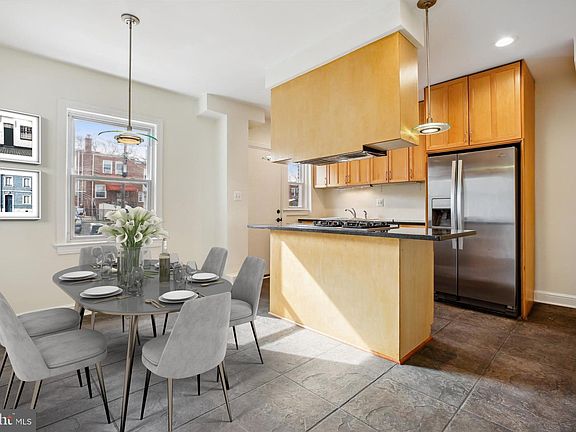 Welcome to 51 Crittenden St NE, a charming brick rowhouse with a delightful covered front porch in the vibrant Brookland neighborhood of DC, just steps from Fort Totten Metro Station. This property has been freshly painted throughout. The entrance level, accessible through the front porch, features a bright living room with wood flooring that flows into the dining area and gourmet kitchen through a wide casement opening. The open-concept chef’s kitchen boasts granite countertops, stainless steel appliances, wood cabinetry, stylish pendant lighting, a large island, 18-inch tile flooring, and direct access to the backyard brick paver patio. The kitchen seamlessly connects to the dining room and an inviting living room, creating an ideal space for entertaining. The upper-level hosts three bedrooms with wood flooring and a full bathroom featuring a tub/shower combination and a skylight. The spacious primary bedroom offers two deep closets and two windows, providing ample storage and natural light. The lower level includes a generous family room with recessed lighting and ceramic tile flooring, a full bathroom, a laundry room, and storage under the stairs. Additionally, this level has access to a gas line, offering the option to install a kitchen if desired. Enjoy the excellent outdoor space, including a charming covered front porch, a rear brick paver patio with a decorative raised circular seating area, and a rear parking surface. The location is truly exceptional! Just 0.4 miles to Fort Totten Metro, this home offers unbeatable access to public transportation. It is steps from Fort Totten Park, the Catholic University Raymond A. DuFour Athletic Center, the U.S. Soldiers' & Airmen’s Home, and a vibrant selection of restaurants and shops. With easy access to North Capitol Street, New Hampshire Avenue, Michigan Avenue, and Georgia Avenue, commuting and exploring the city is effortless. Experience the best of urban convenience and connectivity in this prime location!