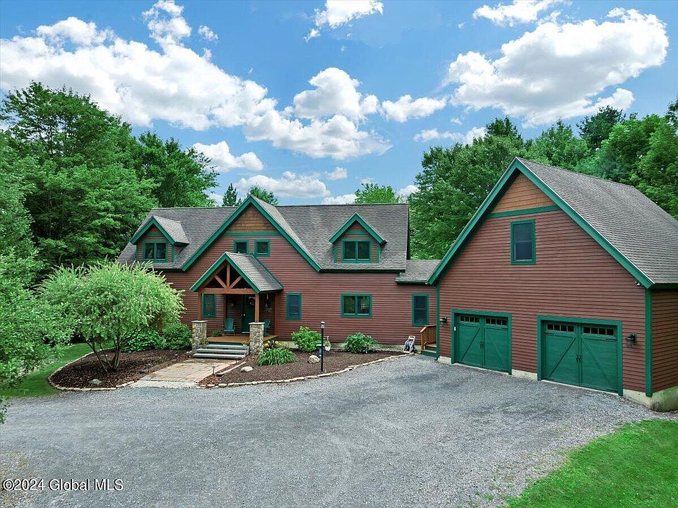 OFFER DEADLINE 5PM SUN! Spacious Post & Beam Charlton home in the Burnt Hills school district with 14.6 acres! Home features 2,639 finished sq/ft with an unfinished 740 sq/ft bonus room above the garage. There are 3 bedrooms, 2.5 baths, an office & a loft that opens to the great room below. All staircases custom built by Bennett Stair Co & main staircase features iron balusters & oak treads. Stunning great room w/ floor to ceiling field stone fireplace is the centerpiece of the home. 1st floor primary suite enters on to private deck w/ hot tub. The acreage has an easy to follow trail & small pond just past the main back yard space. The walk out basement w/ 9 ft ceiling has polished concrete floor, industrial lighting & bar. See additional info sheet for more detail