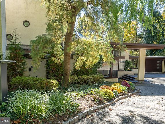 Nestled on the premier street within the highly coveted Lower Merion Township, this home is a hidden gem among just a few homes, each graced with substantial acreage and the seclusion afforded from the private street. Set on nearly three acres of thoughtfully landscaped grounds, this striking contemporary residence exudes a refined elegance and sophistication that captivates upon arrival. Originally designed by the esteemed architect William Ferguson Deknatel, a protege of the renowned American architect Frank Lloyd Wright, this home's architectural pedigree adds an extra layer of historical significance and distinction. Influenced by the principles of organic architecture, emphasizing harmony with the natural environment and innovative design concepts, the open floor plan through oversized mitered windows seamlessly integrates open and covered terraces and vistas of gardens, lawn, woods and sculpture garden. A dramatic one-and-a-half-story atrium entryway welcomes you, with sleek glazed black floor tiles that provide a tasteful backdrop for what lies beyond. In the living room, you'll find exquisite handcrafted built-ins along one wall, flanking an inviting open fireplace with a generous seated ledge. The Pullman-style kitchen prioritizes efficiency and leads effortlessly to an adjacent dining room. Warm woods and a meticulously detailed ceiling create an intimate and refined atmosphere, complemented by yet another fireplace. A discreetly hidden bar serves multiple functions, functioning as a concealed service area, second laundry space, and ample storage. Two family or guest bedrooms grace this level, with one thoughtfully designed as an office with Murphy bed, each featuring its own en-suite baths. As you move towards the private quarters of the home, a sanctuary of unparalleled luxury unfolds. The primary suite, just steps away from the living areas, offers an experience that surpasses expectations. A fireplace graces one wall, while eye-level windows frame serene views. The marble-clad bathroom exudes opulence and is accompanied by two generous walk-in closets. Adjacent to this oasis, a "greenhouse" sitting room with a private side yard exit beckons for moments of tranquil contemplation. The upper level, discreetly accessible via turned stairs, reveals two additional bedrooms that share a well-appointed hall bath. The lower level presents abundant opportunities for recreation and fitness, featuring a billiard room, a gym, a full bath, a second laundry facility, and an indoor pool with garden-level walkout access. This residence stands as an exceptional and fully customized masterpiece of architectural design, reflecting both the influence of Frank Lloyd Wright's principles and William Ferguson Deknatel's unique vision. By appointment only, it represents the epitome of elegant living, marrying modern sophistication with the serene beauty of its natural surroundings.