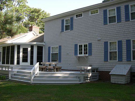 Cape Cod 4 bed (one on main level) with lots of storage space. Large master with huge walkin closet. Family room adjoins heated and cooled Florida Room. Water views from most rooms. On culdesac. Newly retiled bathroom; additon of tile to fireplace; new family room ceiling fan. Freshly painted exterior. Neighborhood Description Ocean access; sidewalks; community park that has tennis courts; basketball court; picnic pavilion; bocce court; childrens playground equipment; open area for soccer or baseball. Many bike paths. Two places to launch kayaks.