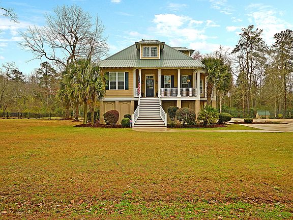 Lowcountry's Finest-Custom Built Southern Living Floor plan just minutes from downtown Walterboro and yet truly quiet cul de sac living! This home, built by Ponds & Sons Construction, is simply breathtaking with its metal roof, Foam insulation, cement plank exterior and wonderful wrap around porches. Situated on 1.7 acres, tucked back in the custom built subsection of Pine Forest, this home boasts its very own trio of duck ponds in the back yard. Sit out and relax on the beautiful decks off the front, side, and rear of the home, or spend your days in the irrigated garden spot and let the stress melt away. This home has 4 bedrooms, 3.5 baths, and a finished office and entertainment room on the ground level perfect for entertaining guests. The hardwood floors in the home are spectacular,