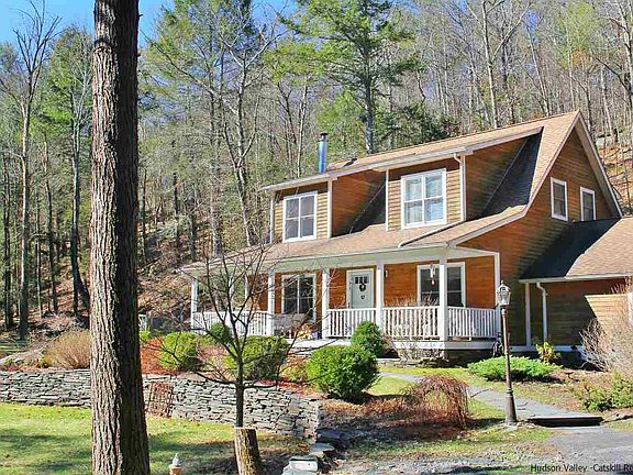 Set back from a quiet country road sits this beautiful cape home with gorgeous flowering perennial gardens, a screened-in porch and several bluestone walkways and walls. Enter into the double height living room and admire the stone fireplace that goes up to the ceiling. The first floor has an open living room/dining room/kitchen and includes a bedroom, a large full bath with washer/dryer and entry to the garage. The second floor master bedroom has its own bath with Jacuzzi and separate shower as well as a walk-in closet. There's also a large loft space that overlooks the living room that lends itself to multiple uses: it is currently used as an office, could be a play room and/or an excellent guest room. Perfect for all seasons, whether weekender or full time resident. House is 15 minutes to both Minnewaska State Park and the Ashokan Reservoir and 40 minutes to Bellayre Ski Center.