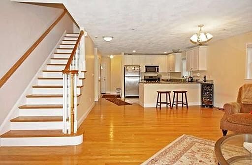 This Pristine TOWNHOME was built in 2002 by a local master builder and is the largest in this development! The main level of this end unit features an open floor plan with a living room and dining room which leads to a gourmet kitchen w/granite countertops, SS appliances, pantry and breakfast bar, and convenient in-unit laundry in the half bathroom. This 6 room, 2 bedroom, 2.5 bath condominium also includes a balcony, master bedroom with bath, central air, pull down attic storage and deeded 2 car parking(side by side). Fully tiled finished basement w/heat & central air. Enjoy the benefits of a local community with it's fine restaurants and shops while having the comfort and advantages of the easy commute to Harvard Square, public transportation, downtown, Storrow Drive, Mass Pike and Arsenal Arts Center.