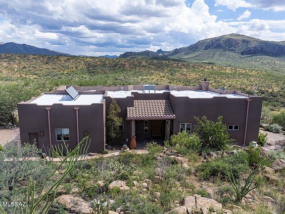 Located in the exclusive gated community of Salero Ranch, this exceptional custom home sits on 36 acres of pristine land, offering a rare opportunity to live in a tranquil, expansive setting yet sited close to ranch main gate. At an elevation of 4,165 feet, the property enjoys mild winters, comfortable summers, and refreshing seasonal rains, providing the perfect environment for outdoor living. Surrounded by natural beauty this home perfectly captures the essence of Southwestern living. The unique ranch design features high ceilings, wide hallways, and an open-concept floor plan that creates a spacious, inviting atmosphere. Kiva log ceiling beams and rich alder wood finishes throughout lend the home an elegant yet rustic charm. SEE MORE.. A stunning natural rock-faced fireplace serves as a centerpiece in the great room, offering warmth and a striking focal point. The fully appointed gourmet kitchen includes a center cooking island with colorful pendant lighting, custom cabinetry, and top-tier appliances, making it ideal for both meal preparation and entertaining. In addition to its aesthetic appeal, this home is built with energy efficiency in mind, ensuring sustainability without compromising on comfort, and even has its own well and cisterns for water conservation. Outside, the expansive 36-acre lot provides unparalleled privacy and panoramic desert and mountain views, mature desert shade trees offering endless opportunities for outdoor recreation. Whether you enjoy horseback riding, hiking, or simply relaxing in the serene surroundings, this property delivers a lifestyle of peace and luxury. Salero Ranch is more than just a home; it's a sanctuary that combines the best of nature, design, and energy efficiency, making it the perfect retreat for those seeking space, style, and tranquility.