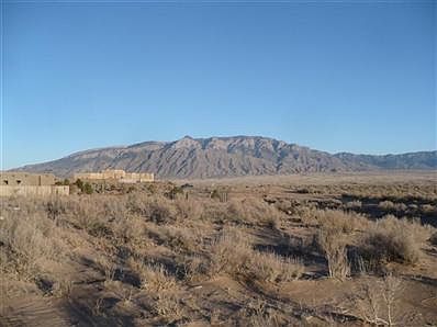 Great Building lot with unobstructed views. Most of lot is elevated, and back is to the Sandias. Very nice homes in area. Water, sewer, & gas can possibly be brought in from Rio Rancho. Do not know those assessments.