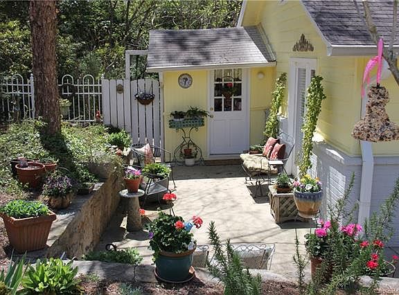 Quaint and charming English style cottage nestled among beautiful gardens with w/perennial plantings, patios & stone walls. Conveniently located in a quiet neighborhood within easy walking distance to Library, Fine Arts Center, Churches & shopping. Hardwood floors throughout living area, newer architectural roof, natural gas heat. Large living room with Jotul gas stove, light and cheerful kitchen & dining room with french doors to deck overlooking fenced yard. Large laundry room high end washer/dryer. The cottage garden is fronted by a white aluminum fence and half circle driveway and a drive into the carport. This is a very special property priced to sell quickly in AS-IS condition. The price reflects needed repairs to the basement/foundation.