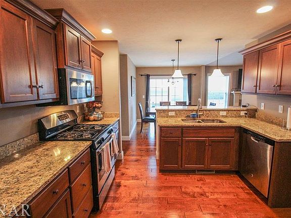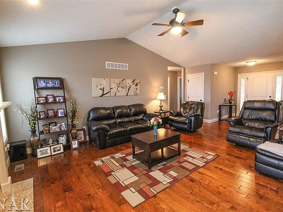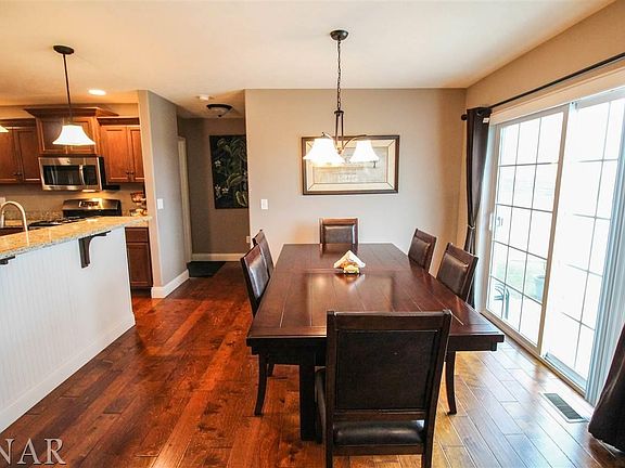 Wonderful East Bloomington 1 owner ranch home in Harvest Point Subdivision. This 3 bedroom and 2 full bath home boasts an open floor plan with beautiful hardwood floors. Awesome family room with cathedral ceilings and a gas fireplace. The breakfast bar and granite countertops, provide tons of kitchen storage while still allowing you to have a kitchen table as well. All stainless steel appliances! Wonderful Master Suite with double vanity, garden tub and stand up shower. 1st floor laundry room. Professionally landscaped yard,a huge patio( 14 x 39) and no backyard neighbors at this time. Partial brick front, covered front porch! The large lower level is ready to be finished! Unit 5 schools (NCHS, Evans, Towanda). Shows like new, don't miss this one!