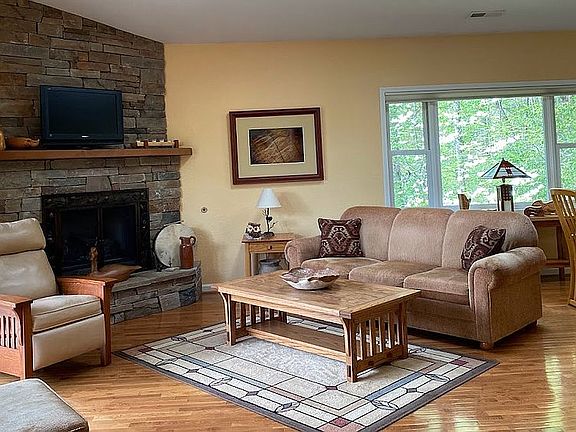 This move in ready townhome, 2245 square feet, four bedroom, 2 1/2 bath, is located in Connestee Falls', Qualla Village. Scheduled maintenance is provided along with a private dock on Lake Ticoa. Very light and bright with lots of windows and skylights in the vaulted ceiling. Large screened in deck in front with a patio in back ready for your grill. Open kitchen and dining area with stainless steel appliances. The master bedroom on the main level has a walk in closet. Lower level family room has a separate entrance, large bedroom and bath. Home includes an inline electronic air purifier. One-time ammenity fee of $10,500 if paid at closing.