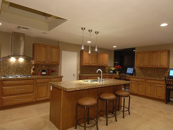 Outstanding Value!! Luxury Living!! Completely remodeled top quality upgraded desert retreat. Immaculate move-in condition. Reconfigured Kitchen, Living Room, dining area creates a great room'' effect. Flooring is 18X18 travertine tile and carpeting. Replaced cabinetry throughout. Stainless steel GE Profile kitchen appliances with slab granite counters and back-splash. Replaced air conditioning and water heaters. Two Master Suites with baths also totally redone. The privacy of the large enclosed rear garden and patio is ideal for your pets and outdoor entertaining.