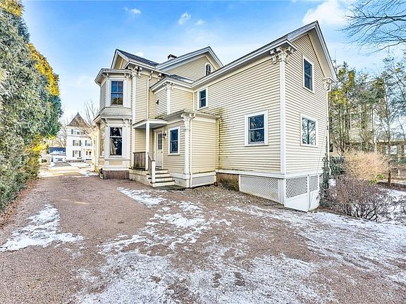 A rare opportunity to live on charming Elm Street in this exquisite 1870 Victorian home. Enter the foyer and your eyes are drawn to the striking parquet floors leading to the warm dining room, living room and den. A sunfilled modernized kitchen leads out to a beautiful stone patio perfect for coffee, cocktails, and entertaining. A renovated primary bedroom and bathroom, two other bedrooms with a shared bathroom, and laundry room finish the second level. Another bedroom or office and storage room complete the third floor. A detached two car garage offers more storage space. Wilcox Park, shops, restaurants, and Amtrak and just a short walk to town. Watch Hill, Napatree, Misquamicut, and East Beach are less than six miles away. Enjoy this warm friendly home for years to come.