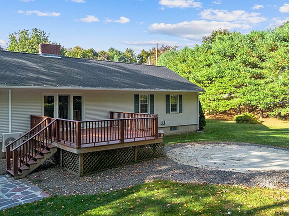 Pristine Ranch in desirable neighborhood. Quality construction with lovely maple floors in both dining and living rooms, and bedrooms. Wainscotting and six-paneled wood doors are part of the fine craftsmanship of this home. Nice layout with separate dining area, large living room with both heat pump and fireplace. The patio doors off the living room lead to the large composite deck and open flat back yard. The property borders the Viles Estate and conservation area. The kitchen has an eating area, pantry, new vinyl flooring and newer appliances. Three bedrooms with the primary bedroom having two closets. The large family room in the lower level has a wood stove and half-bath. Plenty of storage in the basement unfinished area. Two car garage. Meticulously maintained. One floor living. ***The offer deadline is Saturday 10/5 at 5pm; notification by Monday 10/7 by 9am. Seller reserves the right to accept an offer prior to the offer deadline.***