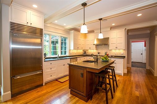 Stunning shingle style Colonial offers gracious two story foyer opening to grand fireplaced formal living room with hardwood floors and lovely dining room. Expansive chef's kitchen offers stainless steel appliances, double ovens, subzero refrigerator and custom built ins. Sun filled breakfast area with French doors leads to spectacular wrap around porch overlooking meticulously maintained private grounds. Elegant fireplaced family room with exquisite detail, picture windows and hardwood floors complete the first floor. Second floor features exceptional master suite with serene spa like bath, three generous bedrooms and pristine sitting area. Spectacular walk out basement offers oversized bonus room, exercise room, additional bedroom and full bath. Close to town center, walking trails, and train fantastic opportunity!!