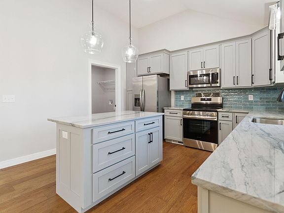 **New Construction!** Step into the realm of possibilities with this beautiful new build! The open kitchen/living room offers plenty of space to spend time together. The kitchen offers beautiful quartz and granite countertops, new silver Frigidaire appliances and custom built cabinets. Three bedrooms, 2 full and one half bath on the main level. The lower level offers plenty of space with a full finished bath and a garage door for your mowers, boats, ATVs or off road vehicles! It would also make a great workshop! In addition there is a 12X16 covered deck on main level.