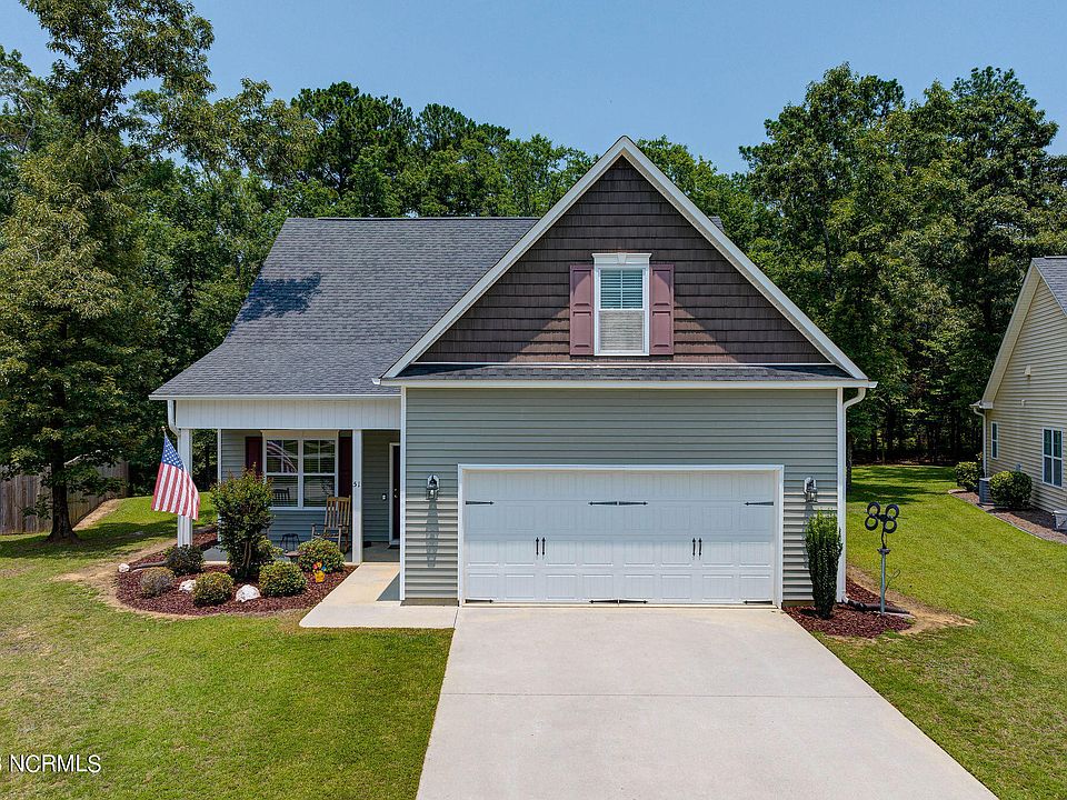 Come and see this gem! It feels new, and you will not find all this home offers, with newer construction today and at this price. This beautiful home is well maintained and sits on a large cul-de-sac lot. Entering you will find engineered hardwoods in the foyer, the dining room, and the living room. The kitchen has wood cabinetry, granite countertops and upgraded stainless appliances, and it is open to the living room, a perfect floor plan for entertaining family and friends. The primary suite is on the main level, with plenty of space for a king size bed and has a large walk in closet. The bathroom has dual vanity sinks and a walk in shower. Upstairs there are two nice size bedrooms and a full bath to share. Plus, there is a large bonus room to use as your hearts desire, with not one but two closets for storage. Speaking of storage, this home also has several walk in storage areas. The double car garage is equipped with a side entry door and a laundry sink. The cherry on top, is the beautiful oversized backyard that feels private and offers plenty of space for fun activities. Make this your new home today, so you can enjoy every morning and evening with your favorite beverage, on the front or back covered porches! While you are viewing this wonderful home, please check out the neighborhood boat ramp and gazebo just two streets down. With the low HOA of $20 a month, you will be able to use and enjoy this amenity as well.