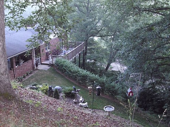 Beautiful custom home that sits on the mountain overlooking the Cullasaja River. Stunning mountain and river views with roughly 800ft of Trout stocked river front property. Superior construction quality! This home is solid brick and block frame. Full basement with 10ft ceilings that has endless potential. Solid wood floors, Anderson windows and new appliances. Magnificent stone fireplace built with rocks from the river currently with gas insert easily removable. Priceless views and privacy to get away from it all.
