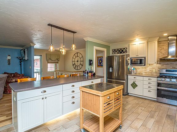 Meticulously maintained and tastefully upgraded, this exceptional ranch home boasts top-tier components throughout. Featuring 8 rooms, 3 bedrooms, and 3 baths, this residence offers a perfect blend of comfort and elegance. The custom-designed kitchen features a casual dining counter and under-cabinet lighting. The formal dining area is perfect for hosting gatherings. Adjacent to this space, a door leads to a step-down private pergola patio. The living room exudes warmth with its gas log fireplace and beautiful hickory flooring, creating a cozy ambiance. The primary bedroom is a tranquil haven, featuring an ensuite 3/4 bath for added privacy. A second bedroom and a full bath off the hall accommodate family and guests with ease. The spacious entry foyer leads to a lower level where you'll find a large family room, perfect for entertaining or relaxing. This level also includes a versatile third bedroom or office, an exercise room, another full bath, a workshop area, and a heated mudroom with steps leading to the 3-car garage. Nestled on a private, tree-lined 1-acre lot, this home offers plenty of space and tranquility. The charming farmer's porch provides a west-facing view of the mountain range, making it an ideal spot to enjoy sunsets. With too many upgraded features to list, this home is truly a must-see. View the "Property Features & Furniture Exclusions" list in the documents section for more information.