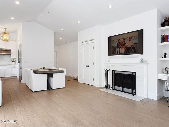 Luxury at it's finest. Top floor front facing end unit completely gut renovated 2021/2022. Cathedral ceilings, all new windows, new engineered oak flooring throughout, all new modern trim, custom marble spa shower with Porcelenosa stone and tile, custom vanity, recessed lighting and all new light fixtures. Shiplap bathroom and bed wall, chef's dream kitchen with Greenfield cabinets, Thermador professional appliances, Bosch dishwasher, double oven with steam, Imperial Danby marble countertops, backsplash and matching marble fireplace. All new interior doors w/Baldwin hardware, LG washer/dryer, custom built in desk, shelves and new closets. Hunter Douglas remote honeycomb shades to control natural lighting in bedroom. Nothing has been overlooked and no expense spared. Don't miss it