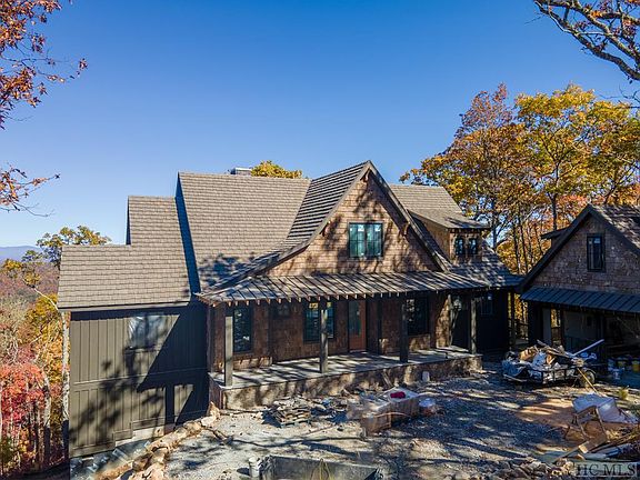 New custom home nearly completed in Old Edwards Club at Highlands Cove designed to take advantage of the 180 Degree panoramic views from nearly every room! 5 bedrooms, 5.5 baths, exceptional floor plan includes two private suites (including master) on the main level and a kitchen serving bar that opens up to the covered deck with jaw-dropping long range views to the Blue Ridge Parkway and beyond. Euro-Wall Bi-fold doors expand to the abundance of outdoor living space and is the perfect place to enjoy the view and cool summer temperatures! Other features include: 3 fireplaces, two wet bars, shiplap walls in main areas and master suite, heated floors in master bath, wide plank European oak floors, top of the line Wolf and Subzero appliances, Cambria Quartz countertops and Kohler plumbing fixtures. Membership is optional. Members of Old Edwards will have full use of Old Edwards Club amenities: full service dining room and bar, chimney terrace, 18-hole golf course, tennis, fitness, outdoor heated mineral pool plus all of the amenities at GlenCove: Organic community garden & farm, recreational lake with boathouse offering fishing, kayaking, canoeing and paddleboarding, hiking trails to Shortoff and Yellow Mtn National Forest, 12-hole par 3 golf course, recreation barn with bowling, pool tables, ping pong, kids arcade and state-of-the-art golf simulator lounge, 4-lane heated lap pool with kid's splash pool, playground, pickleball, bocce ball, multi-purpose court, fitness & wellness center with spa services, and a world-class short game golf area AND the amenities at Old Edwards Inn & Spa: access to a relaxed European style luxury spa, two additional pools, pool cabana, fitness center and fitness classes. Gated access that is manned 24/7, 365 days a year with paved roads & underground utilities.