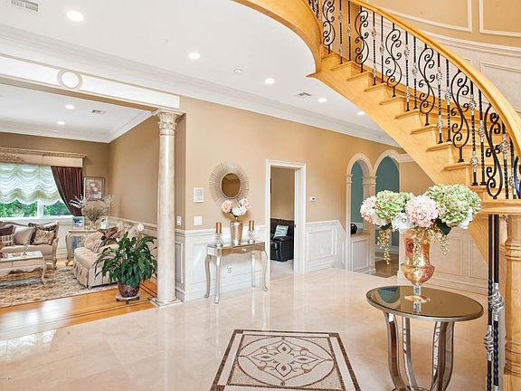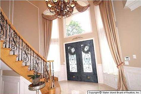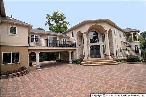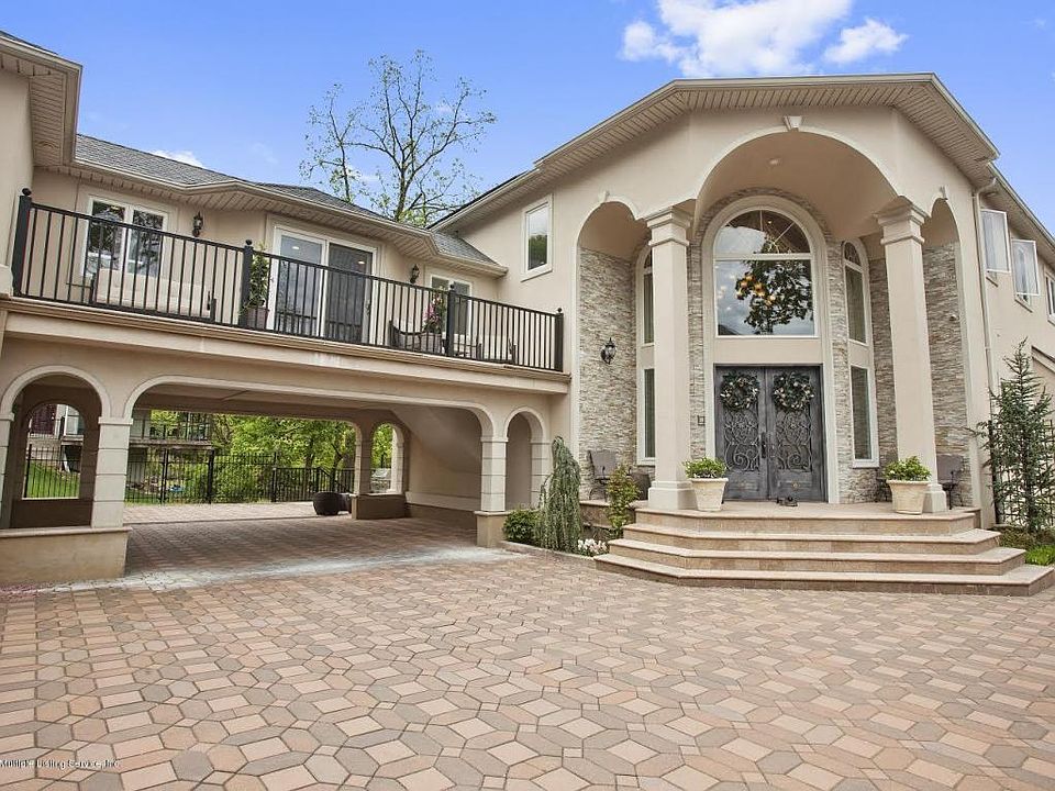 Stately and Stunning describes this beautiful Todt Hill 9,169 sq ft Villa, which sits on a 17,788 sq ft loot with views of the Verrazano bridge. This magnificent home features a grand two story foyer with a circular staircase, formal living and dining rooms, an elegant sunken family room with a fireplace and huge windows to enjoy the views of the private landscape, dinette area and a sunroom off of a huge eat in kitchen with a separate large laundry room, elegant master bedroom suite which features a fireplace, sitting area, private full master bath and sliding doors to a balcony with stunning scenes, three additional large bedrooms in the main home which is connected by a balcony to an additional two bedroom guest house with a separate kitchen, full bath, and its own separate entrance.