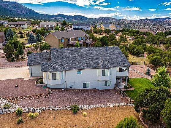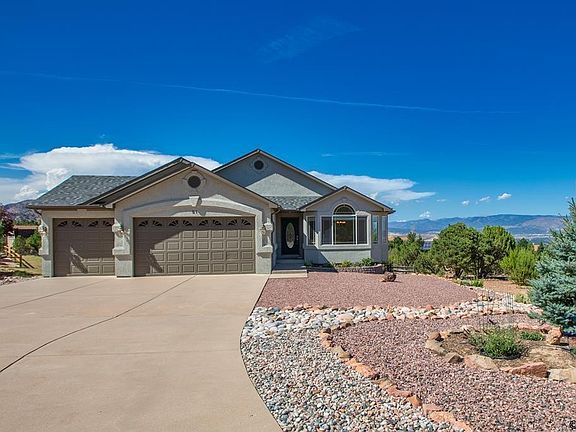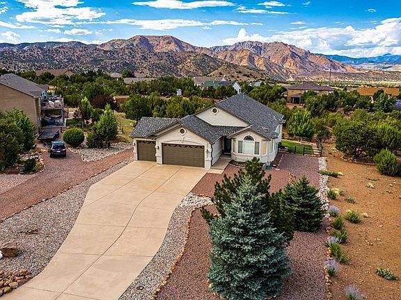 Consider this your dream home found! Come see this stunning 3824 sq ft custom home built in 2005, on .6 acres perched high above Canon City in the Dawson Ranch neighborhood. Situated at the end of a quiet cul-de-sac, you will love the gorgeous curb appeal and breathtaking mountain views over the Arkansas Valley and on towards Pike's Peak. From the lofted ceilings, open concept living/kitchen, formal dining room, 5 bedrooms, 3 full baths, 5 piece master suite with balcony access, iron and hardwood stairway leading to walk-out basement, RV parking, and included solar system, the list goes on and on! Arched doorways throughout the home, along with lighted niches and mantle above natural gas fireplace add even more luxury to this high-end home. Basement is fully finished with the exception of some flooring. Fenced backyard with wire and split rail along with lots of mature pinion and cedar provide a feeling of privacy and quiet, combined with a nicely manicured back lawn and in-ground sprinkler system. Oversized 3-car attached garage in addition to plenty of storage in the home means you'll always have ample room for projects and toys! Radon mitigation already installed. Includes stainless steel kitchen appliances with brand new dishwasher and microwave. Ready for its next lucky owner to move right in and start enjoying the finer things, especially.... this VIEW!!
