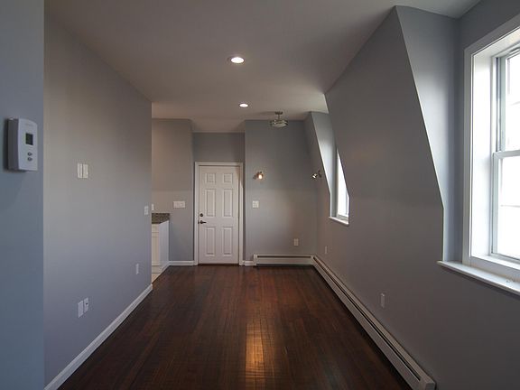 Offering a 1 Bedroom 1 Bath apartment for rent, ideal for an individual or couple. Located in a quiet neighborhood very near to bus routes, and under 15 minutes by car to Boston or the Airport. Recent full renovation leaves everything brand new except for the charming original hard wood floors. High ceilings and subdued gray tones lead to a relaxed and tranquil vibe. Spacious fully applianced galley style kitchen leads into the open concept living and dining great room. Full bath with shower tub combo will leave you refreshed. The large bedroom with ample closet looks out to an incredible view of Boston. Apartment features in unit washer and dryer. An efficient radiant heat and on demand water combination boiler, along with the comprehensive insulation means elow heating bills. A thoughtful office nook offers views to the water. Shared deck for outside space. Water is included, gas and electric are not included. On street parking. No smoking and no pets please.