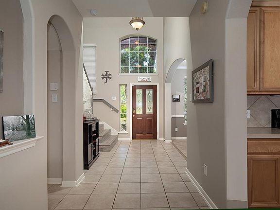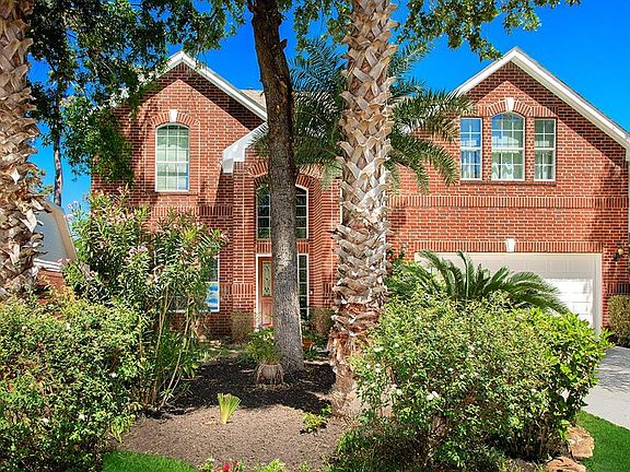 Impeccably maintained Lennar home that backs to a lush greenbelt in Harpers Landing! Great location, close to area park, I-45, Grand Pkwy, Costco, HEB, a new waterpark and more! New roof, recent interior and exterior paint, new fence, new a/c, installed new laminate flooring on stairs and upstairs, soaring ceilings, abundant windows, storage and new pool heater. Open concept kitchen with Corian counters, stainless steel appliances and breakfast bar overlooks sunny breakfast room and den with gas log fireplace; formal dining with crown moulding and chair rail; all 4 bedrooms and game room up; 3 car attached tandem garage with epoxy floor; private backyard has covered patio, outdoor kitchen, fire pit, sparkling pool and spa with waterfalls - and no rear neighbors!