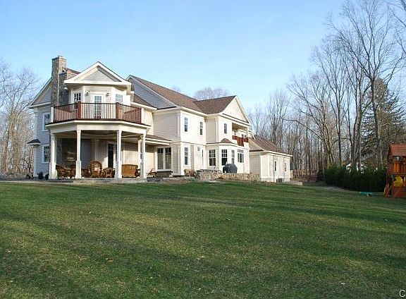 For more information on this property, contact William Raveis Real Estate, Mortgage & Insurance at 1-888-699-8876 or contact@raveis.com. Elegant newly constracted colonial with transitional accents. Offers dramatic 2 story foyer, double staircase with iron balusters. Detailed millwork throughout the house, coffered 9' ceilings, 3 fireplaces. Gourmet kitchen, octagonal breakfast room. Open floor plan, formal sunny LR, FR, DR,PR, Library, 5 spacious bedrooms, all have walk in closets, 5 full bathrooms,1 powder-room. The residence stands upon 2 acre level lot in rectangular shape, two sides of the property are surrounded by lovely solid 4 foot stone walls and two other sides have mature Norway Spruces 15'+ Two entry way circular driveway, huge covered patio with outdoor fireplace, 2 balconies, 4 car garage, vegetable garden, shed with chicken coop. Agent owner.