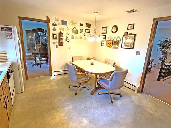 Lovely Split offers eat-in kitchen, hardwood floors under carpets, Remodeled full baths, Dining room sliders lead to 3 season sun room then to Trex deck with hot tub, Living room with fireplace, Family room has fireplace and sliders to outside, Economical 3 zone gas heat, hot water, C/A with whole house fan, Updated electrical, auto garage doors, Laundry off family room, Large rear fenced yard. To be sold as-is.