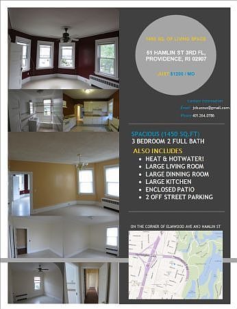 Nice 3rd floor apartment for rent in Providence near Roger Williams Park Zoo. This apartment has 3 beds , 2 full baths, living room, dining room, and kitchen. Can move in right away! Section 8 OK! Call 401 497-1707 to make an appointment