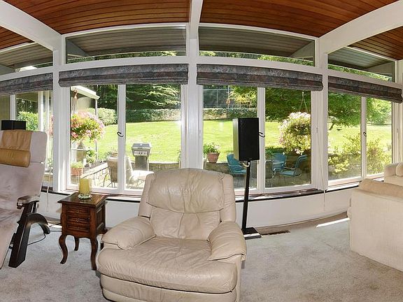 This custom built 4 bedroom, 2 car garage California style contemporary ranch with post and beam construction is made of redwood siding and glass on 5+ acres with magnificent views. Located in one of Mendham's most prestigious neighborhoods, this home boasts vaulted beamed ceilings and walls of windows overlooking beautiful vistas with an excellent single level floor plan for easy living. The idyllic setting offers a heated pool, lighted tennis court and incomparable views from each of the spacious rooms. The charming kitchen has a SubZero refrigerator, Thermador double ovens, custom built in pantries and terra cotta floors. Other amenities include a greenhouse, garden fountain, wet bar, separate guest suite and built in Generac 20 KW backup generator.