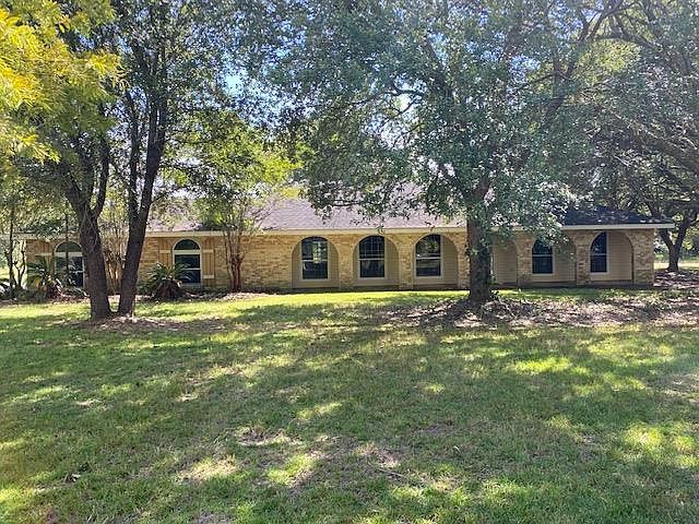 Tucked back under the oaks this Spanish influenced design brick home sits on 5 acres and has so much to offer! Huge open kitchen, custom cabinets, big center island and breakfast area that opens to a large family room with vaulted ceiling and wood burning fireplace. There is an additional room or bonus room off the kitchen that offers alot of space and has a closet. Formal living dining room with wood flooring for the family gatherings. All bedrooms are very roomy in this well laid out floorplan! Carpet only in bedrooms. Beautiful open land behind the house with no restrictions! Close to I59!