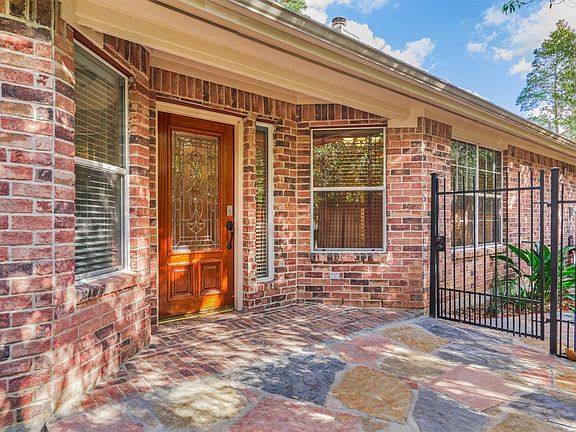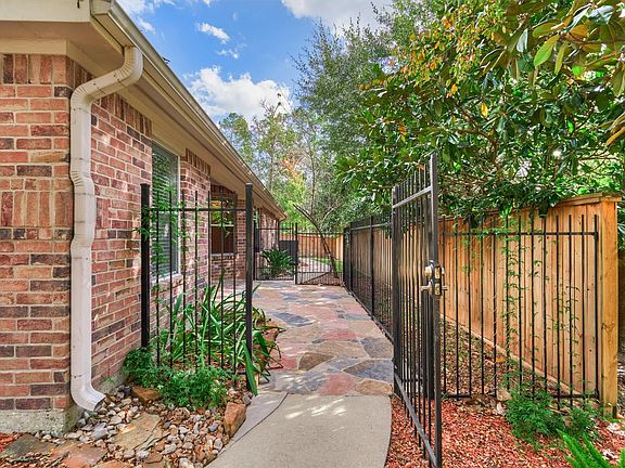 Beautiful One-Story Home with Great Curb Appeal on Corner Cul-De-Sac Lot in Alden Bridge in The Woodlands w/Easy Access to 242, 1488 and I-45. Open Floor Plan with Granite Countertops, Upgraded Cabinets, Stainless Steel Appliances, Gaslog Fireplace in Living Room with Crown Molding and Updated Light Fixtures. Nest Energy-Saving Controller, Highly Efficient Energy-Saving Windows, Insulated Garage Door & Lots of Storage Space. No Carpet, Only Hardwood & Ceramic Tile Flooring. Lovely Landscaping with Easy Maintenance, Lighting & Sprinkler System. Backyard Oasis with Covered Patio with Privacy on All Sides. Zoned to The Woodlands Schools. Washer/Dryer & NEW LG Refrigerator Included.