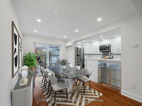 Welcome to this meticulously maintained 3-bedroom, 2+1 bath semi-detached home on a welcoming street. This inviting property features an open-concept kitchen with heated marble floors, stainless steel appliances, and two sets of washers and dryers. Step from the dining room in to a private, fenced backyard with a patio perfect for entertaining, along with a garden that blooms seasonally with vibrant plants and trees. A detached garage with loft storage and a widened driveway offers ample parking. Inside, recent updates include restored floors, new pot lights throughout, attic insulation. The home offers dual heating and cooling systems with Bosch heat pumps, a Lennox furnace, and air conditioning for year-round comfort, plus heated floors in the kitchen and bathrooms. Enjoy proximity to Greenwood Park, Ashbridges Bay, Woodbine Beach, Catholic and French Immersion schools, and major stores, making this home a truly rare find in a fantastic neighborhood!