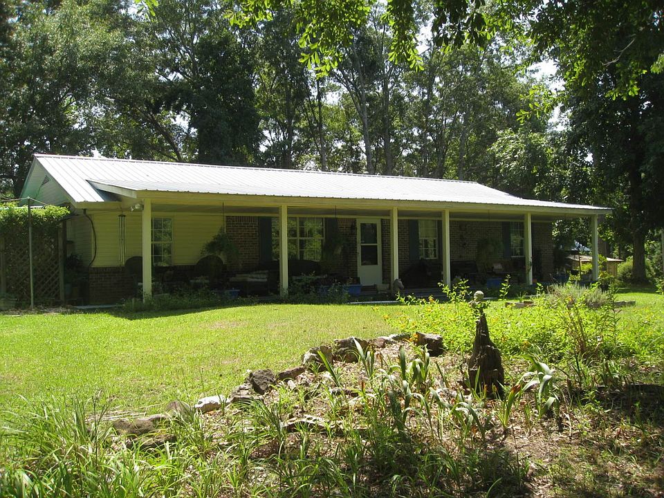 Beautiful, quite well landscaped acreage with many blooming plants. Home includes 3 bedrooms, 1 bath, Living Room, Dining Room, Kitchen and an Office or could be used as a Study. Covered front, side, and back porch. Public water or well water, Potting shed and 2 storage buildings would be great space for a workshop. Includes a small pond in front of house.
