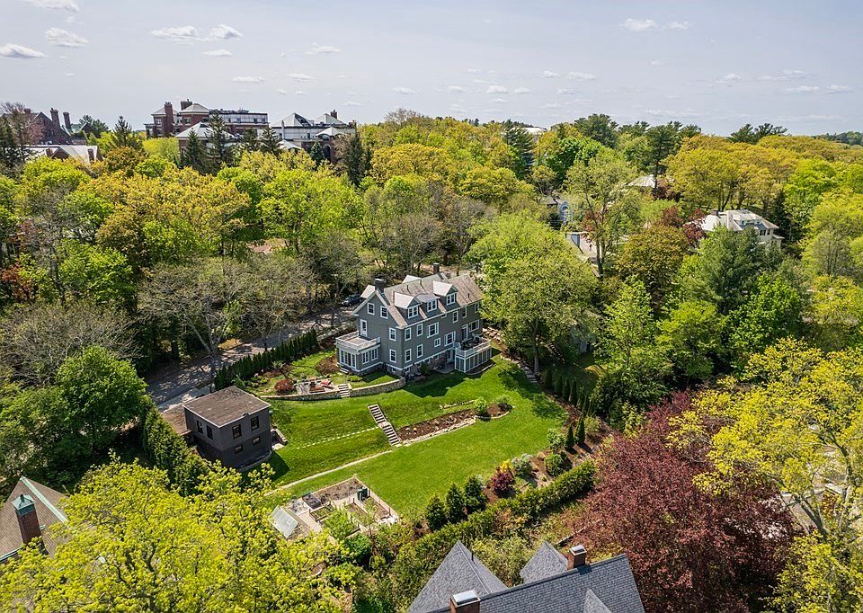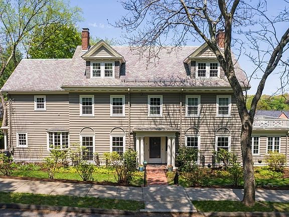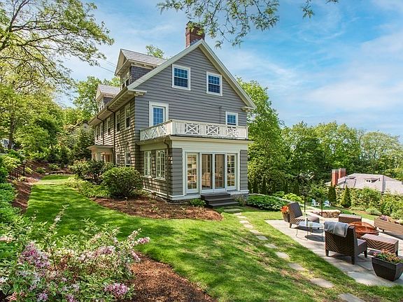 Fisher Hill on a ½+ acre of sprawling grounds, the Nicholl House, designed by Chapman and Frazer, offers breathtaking views & has been extensively updated, blending its original beauty with contemporary amenities. The gracious foyer leads to a living room w/gas fireplace, den w/access to patio, dining room w/fireplace, & kitchen w/custom cabinetry, granite countertops, island, & access to deck. A study w/city views & half bath completes this floor. The 2nd level offers 4 generously sized bedrooms, including a lovely primary suite w/sitting area & fireplace, & a full bath. The 3rd floor has 2 bedrooms, full bath, family room, wet bar, & fireplace. A former speakeasy, the lower level rich w/wood detailing, provides the perfect guest & family retreat w/a kitchenette, bathroom, & private entrance. The 2-story garage, w/stonework, offers an entrance from the gardens to studio/rec room. A custom greenhouse completes this oasis. Near schools, parks, reservoir, shops/restaurants, T & Downtown~