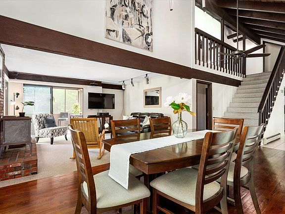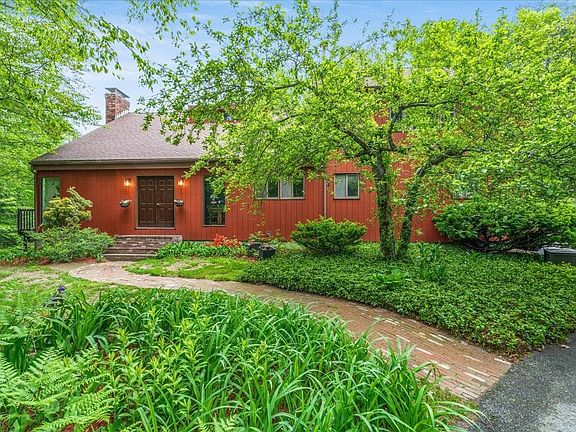 Tucked away in one of Bedford’s most desirable neighborhoods, 51 Horizon Drive offers peaceful, private living on 2.9 acres in a town known for its top-rated public schools. This 4-bed, 3-bath home feels like a treehouse retreat, surrounded by seasonal gardens, raspberry and blackberry bushes, a golden Honeycrisp apple tree, and mature vegetable gardens with a greenhouse. Frequent wildlife sightings add to the serene setting. The sunroom opens to a deck perfect for relaxing or entertaining. Inside, hardwood floors flow through the dining area into a spacious family room and kitchen with soaring ceilings. The cozy living room features a wood stove—ideal for winter nights. The flexible floor plan includes a first-floor bedroom and full bath, while upstairs you'll find a home office, full bath, second primary bedroom, two more bedrooms, and a bonus flex space. The finished walkout lower level offers a climate-controlled space with a half bath and pool table—great for guests, hobbies, or movie nights. Enjoy country-like charm just minutes from shopping, dining, and highway access. Privacy, character, and convenience meet here.