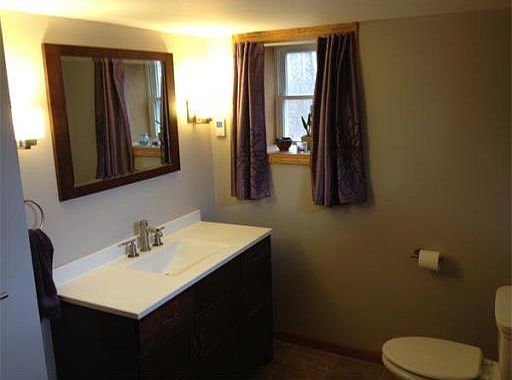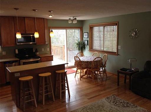 Open floor plan, move in ready remodeled ranch located conveniently near the center of town. Master suite with gorgeous stone tiled shower, jacuzzi tub and heated floor. Large deck off the kitchen over looks landscaped backyard with stone walls and large storage shed. Other highlights include: fenced in yard, custom steel staircase and walk-out basement.