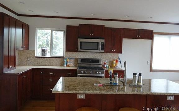 Renovation included new insulation, sub-flooring, wiring, kitchen plumbing, pot lights, granite counter tops, cherry cabinets, and great deep double sink; new stainless steel kitchen appliances include a Kitchen Aide dishwasher that is super quiet. Brand new vent-a-hood equipped microwave and gas stove w/5 burners & griddle -- which has never been used. All brand new bamboo wood floors in kitchen, dining living room and stairs. Big windows across back of house all look out into mountains & miles of valley scenery. Dining room walks-out to two big floor decks run along entire back of house to maximize those million dollar views; lower level deck is covered. Best views in the subdivision! Workshop on the west side, lower level below the lower covered deck: it has some storage, cabinets, power outlets, a counter and a table and a dirt floor. Roof replaced 8 months ago, and exterior of house painted 1 year ago. Well motor replaced 6 months ago. Plans for a garage/shop have been drawn up, to be placed below house for easy access. Those plans will accompany sale of the house at closing. Great opportunity to complete the updating of this property, & generate equity. Only 15 minutes to Divide & 20 minutes to Woodland Park. Wonderful birds, deer, other wildlife abound. Cul-de-sac privacy.