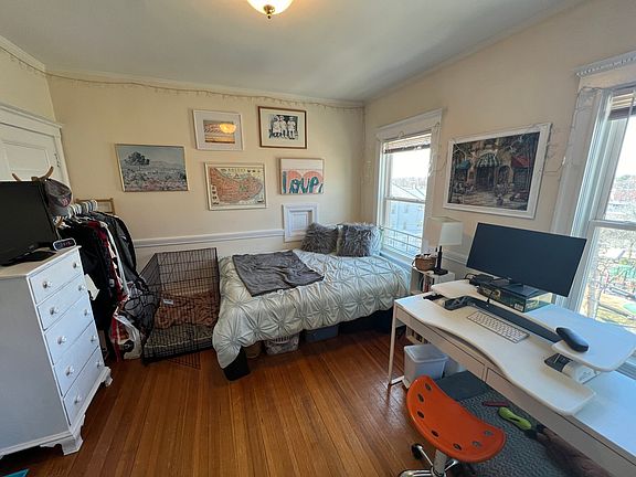 Porter Square Closest train = Porter Square (Red Line) 4 bed/1 bath (third floor) Eat-in-kitchen Separate living room Hardwood floors (except kitchen) Washer/Dryer in-unit Street parking with City permit Private back deck Storage in the basement 1 year