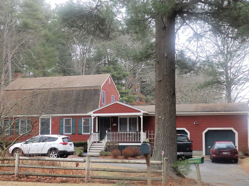 Move-in condition home with Beautiful landscaping on almost 1 acre with flowering gardens, and fruit trees. Home sits back from the street with a circular driveway and 2-car over-sized attached garage. Here you will find 3 bedrooms and 2 full baths home with oversize 2-car garage with laminated beam. Featuring front to back family room and front-to-back living room with fireplace. Formal dining room with glass doors that connect to the eat-in kitchen & bonus room. Featuring all you want including hardwood, porcelain and tile flooring throughout. Upgraded counters in kitchen and baths, newer dishwasher, stove and microwave. New central air system and master bedroom has additional Mitsubishi wall unit. Featuring lots of closets with organizer systems, ceiling fans, insulated wood windows, and underground utilities. Front Mahogany covered deck and multi-level back deck adds to the outdoor entertaining enjoyment with views. Located on a nice side street convenient to shopping and RT 106 and MBTA station into Boston.