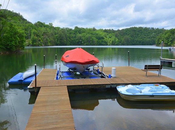 A few short minutes north of Robbinsville, where private property gives way to thousands of acres of public lands, lies this lovely lakefront retreat. Once inside, one's eyes are drawn to the lake, accentuated by the large windows and vaulted ceilings with exposed beams. Custom brick fireplaces complement each of the two living areas. The living spaces are designed to utilize the unrivaled views and sunsets. Light, bright and welcoming, the three bedrooms and two baths offer plenty of space to accommodate family and friends. The two covered porches overlook the gently sloping lawn and native landscaping with the lake just beyond.